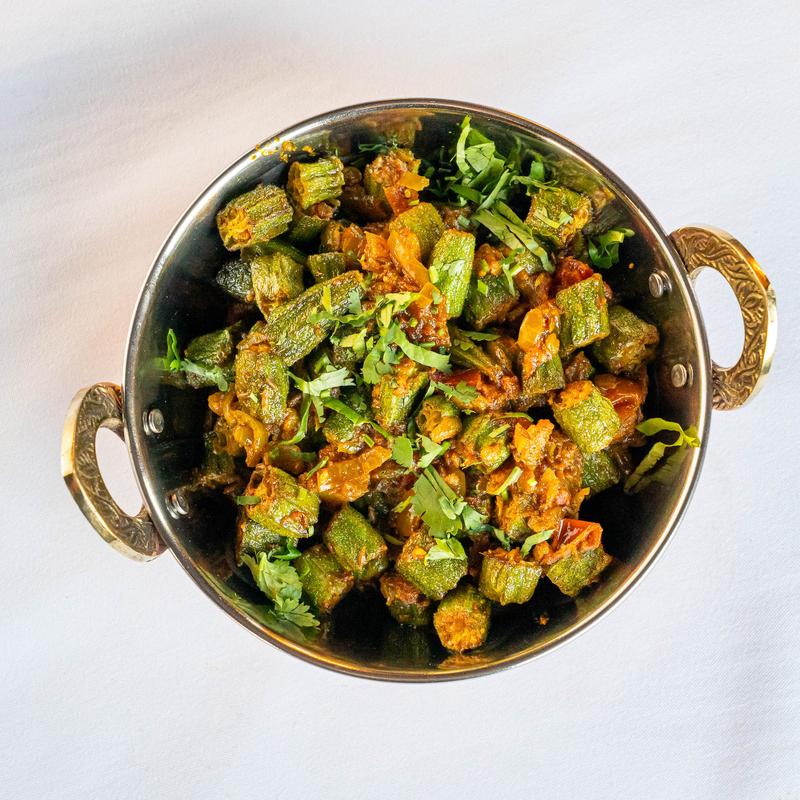 Okra cooked with onion and tomatoes and royal spices.