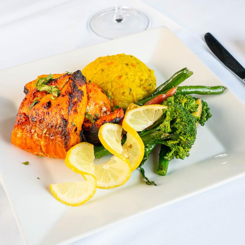 Wild salmon marinated with saffron yogurt & royal spices.