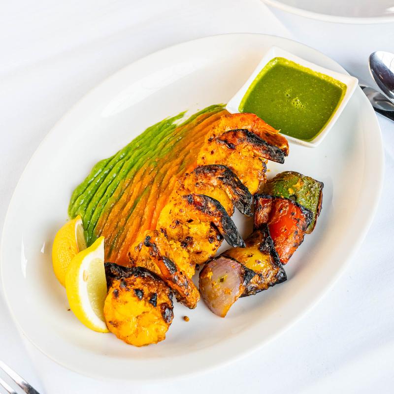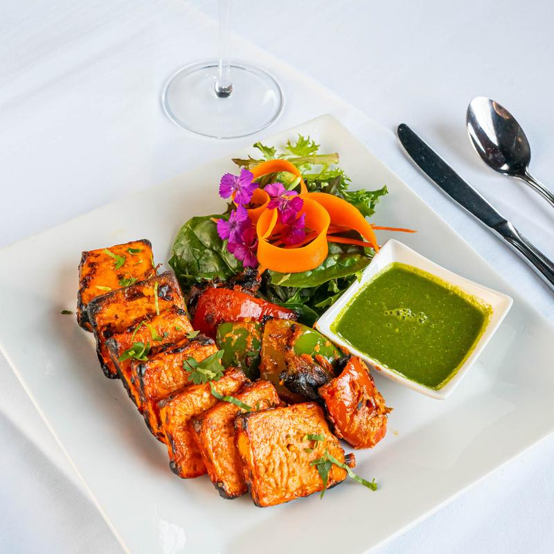 Royal spiced paneer with bell pepper & onion, skewered and tandoor roasted.