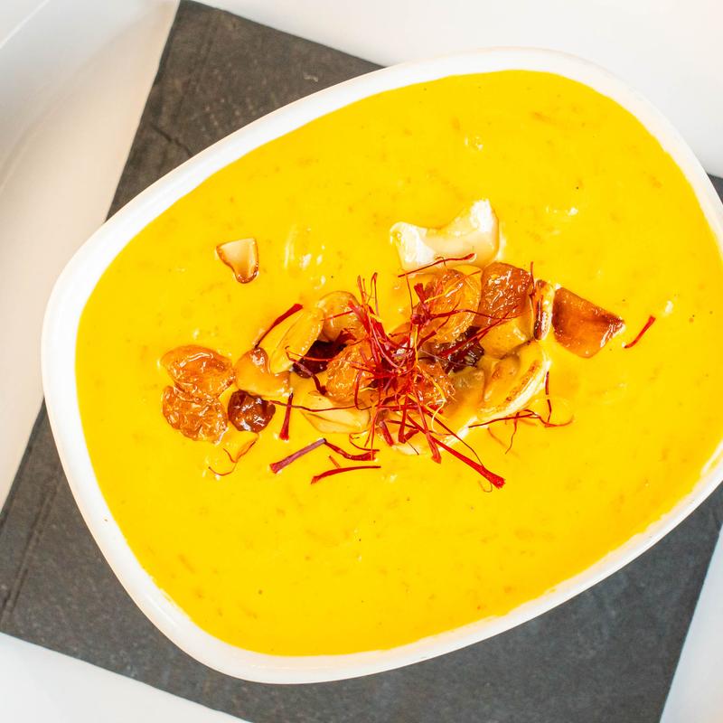 A luxurious bisque of lobster, royal spices, fennel, and Kashmiri chili.