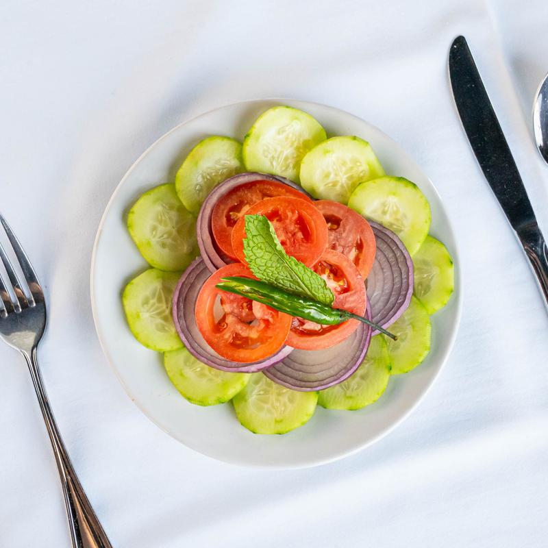 Tomato, onion, cucumber, green chili, lemon.