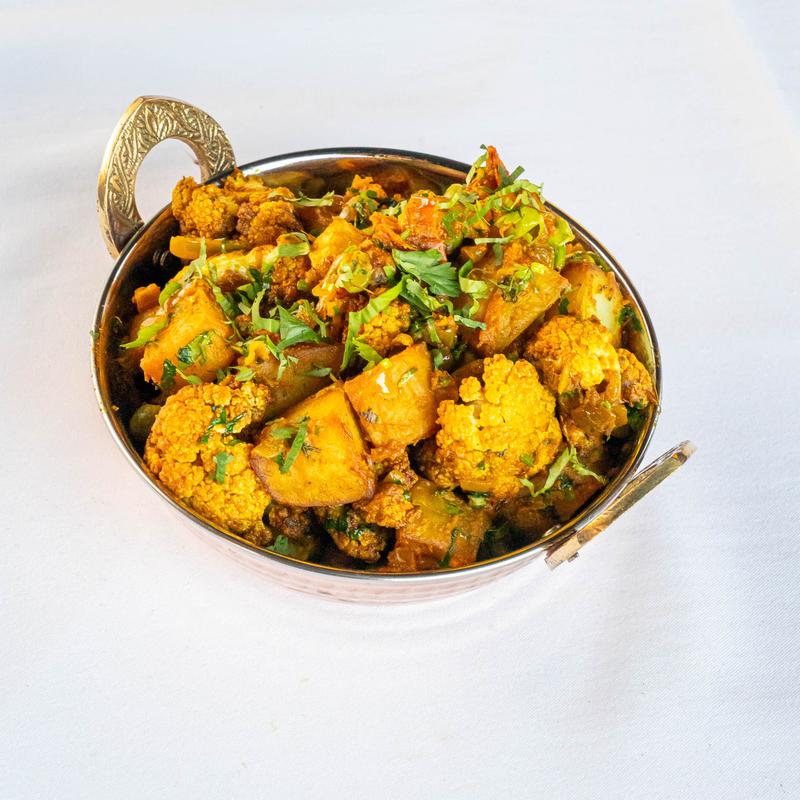 Mouthwatering blend of fresh cauliflower and potatoes, cooked with diced tomato, onions, ginger, and cumin.