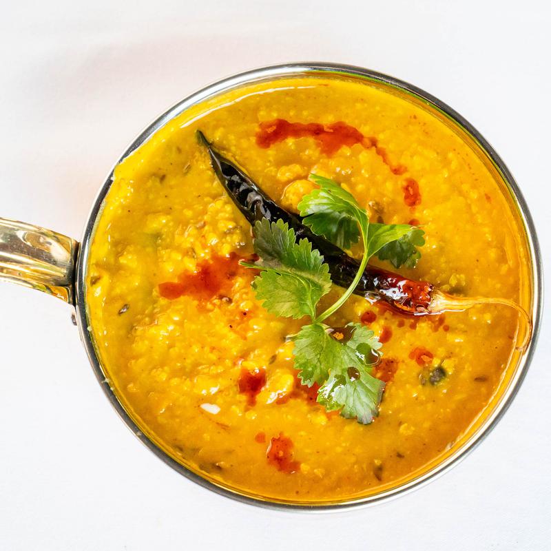 Five lentils cooked with onion, tomato, cumin, garlic, ginger, green chili.